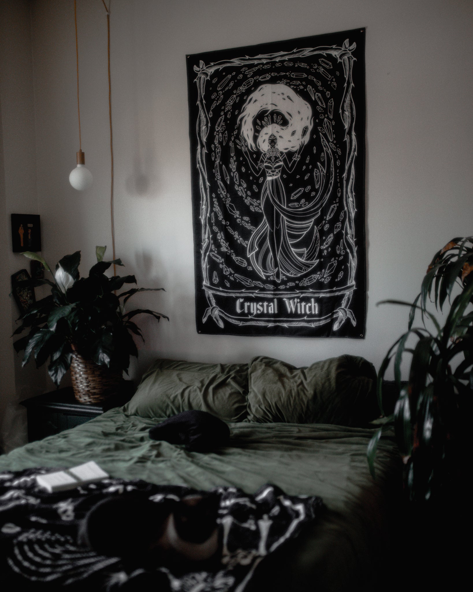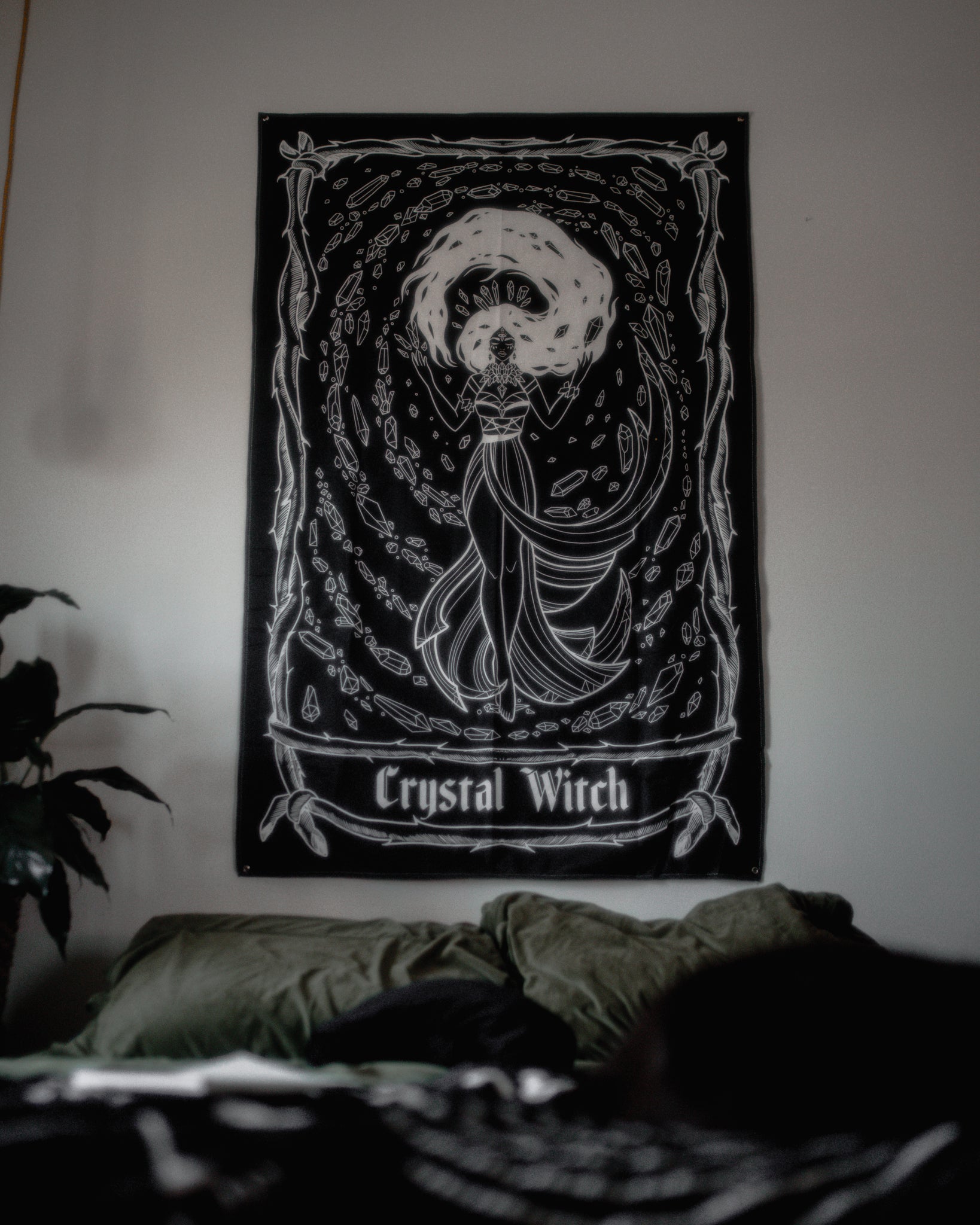 The Crystal Witch Wall Tapestry is an easy way to add tarot-inspired, witchy wall decor to your space. Lightweight with a clean drape, it hangs effortlessly in bedrooms, studios, altars, or reading corners instant mood, minimal effort.