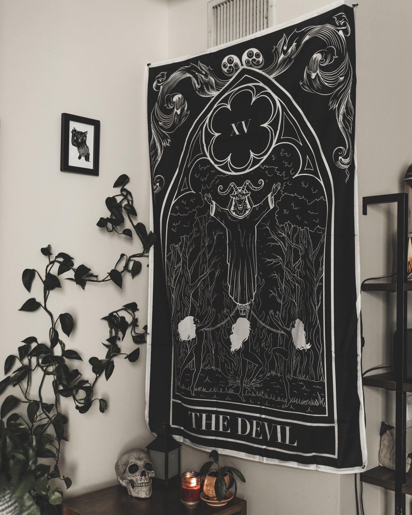 The Devil Wall Tapestry is an easy way to add tarot inspired wall decor to your space. Lightweight with a clean drape, it works in bedrooms, studios, altars, or reading corners when you want instant mood without the effort.