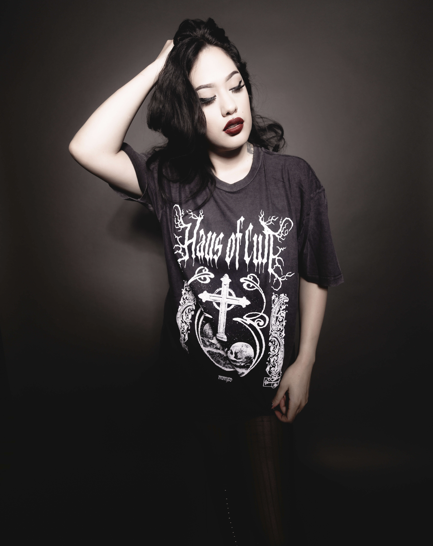 Invoke your darkness with the Haus Of Cult Tee — a bold black graphic tee made for those who walk the fine line between style and sorcery. Designed in the Haus of Cult, this tee pairs effortless comfort with occult symbolism. Made from a soft cotton blend, it molds to your form without losing edge. Whether you’re layering it under leather, draping it over mesh, or wearing it solo, this shirt is a statement your wardrobe will chant.