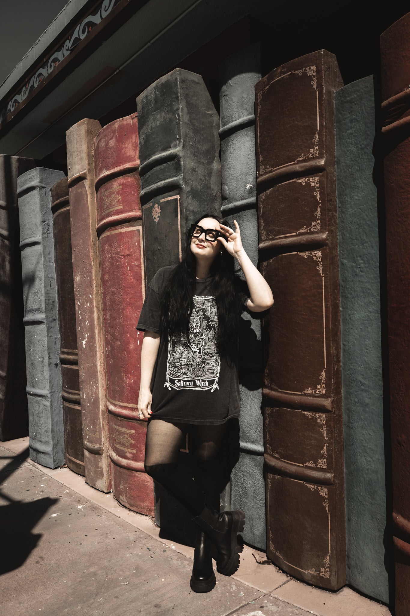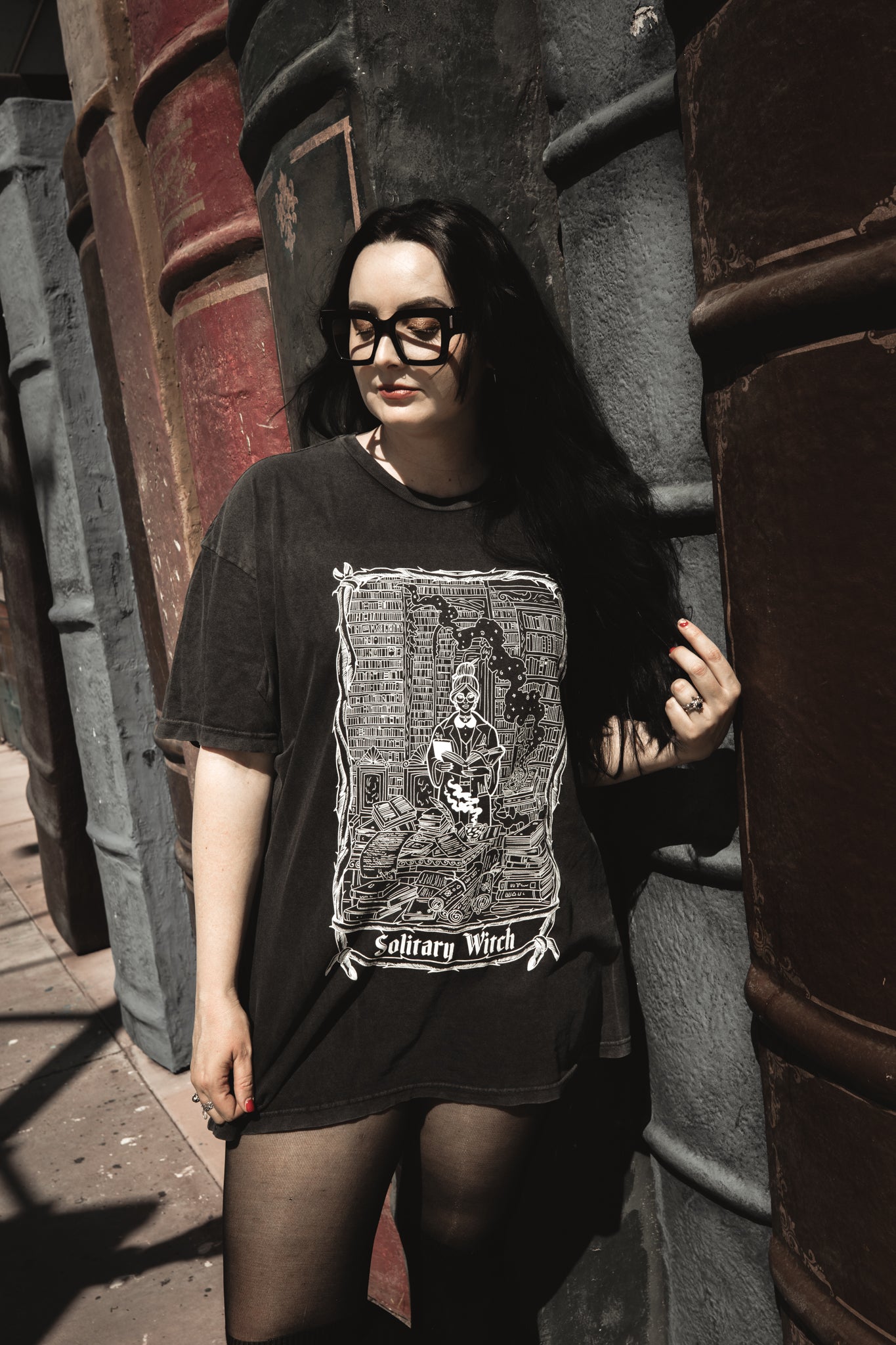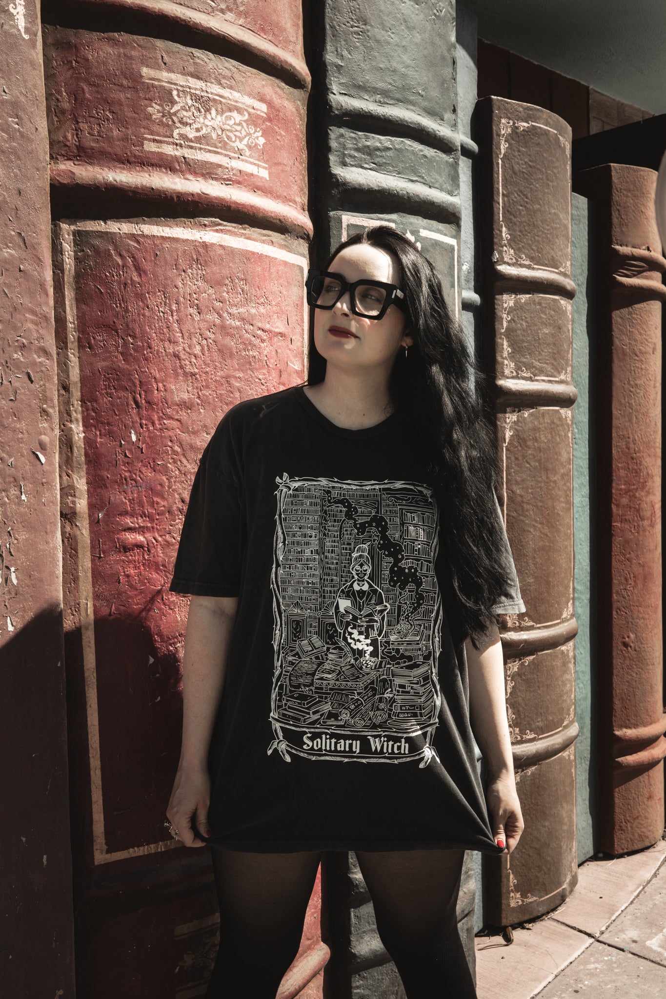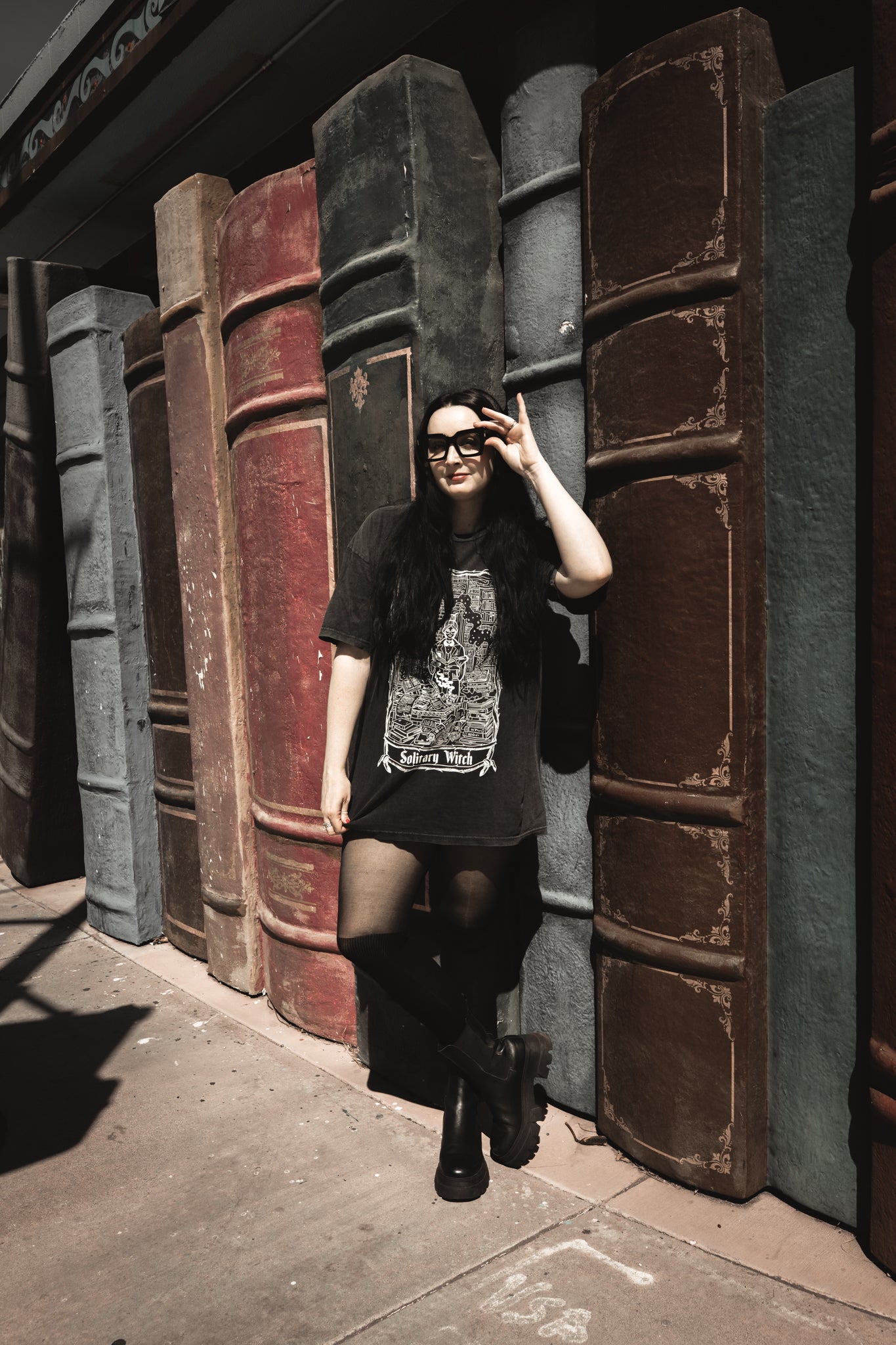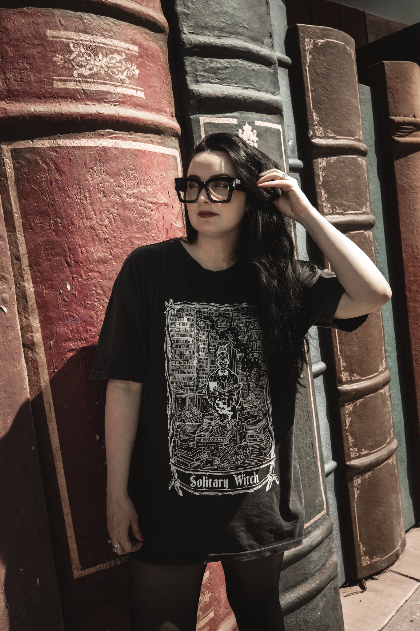 Built for the quiet ones, the thinkers, the page turners, and the late-night spell-makers, the Solitary Witch Tee is a soft companion for your craft. Made from 100% ring-spun cotton and cut in a true oversized fit, it drapes comfortably while you read, write, study, or slip into your rituals.