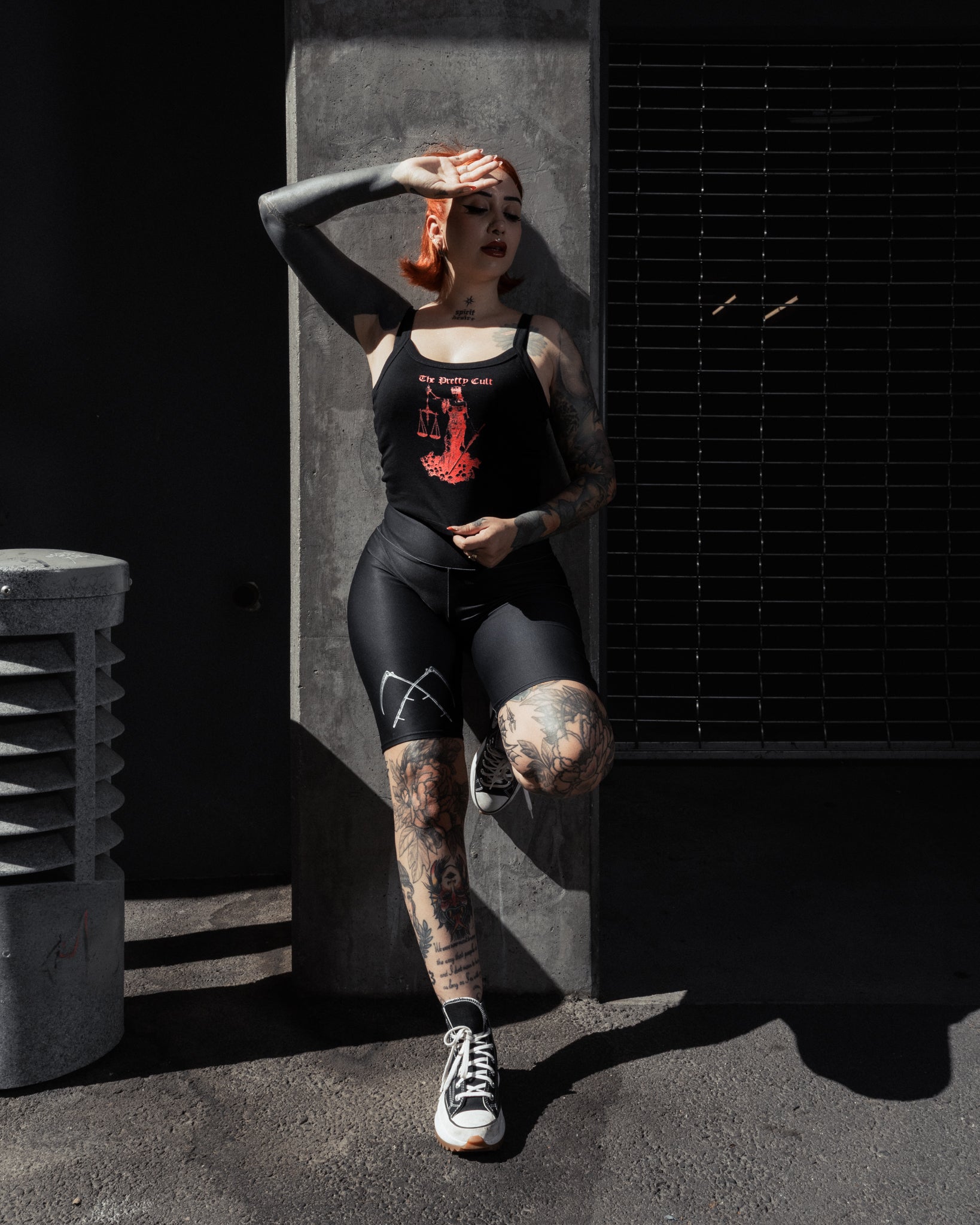 Serve looks and balance the scales in the Lady Justice Tank Top. A rebellious, rock-inspired piece for the bold and unapologetic. Featuring our exclusive occult artwork, this gothic tank channels dark power and divine order with The Pretty Cult’s signature edge.